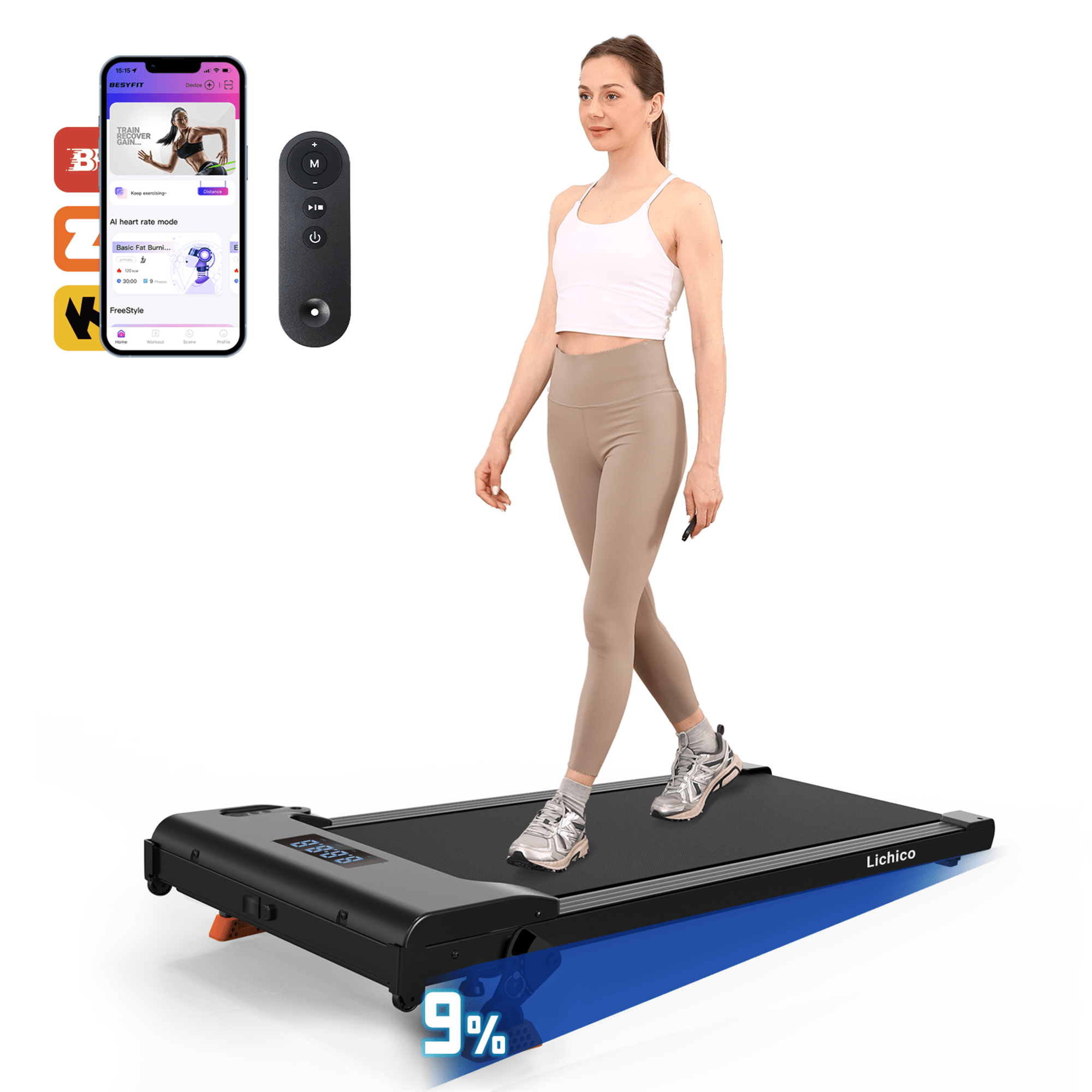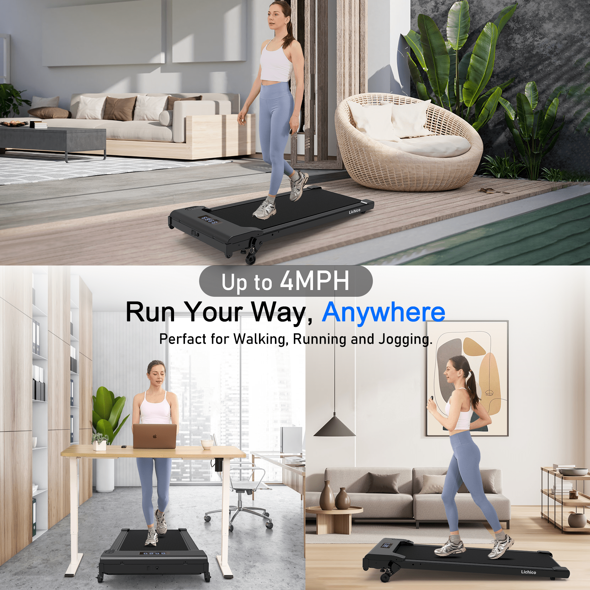 【LED Display Screen】This under desk treadmill clearly displays and tracks data with an LED screen showing distance, speed, time, steps and calories. Plus, you can adjust the speed and control your workout with the remote control.(Logo Lichico/YRUN series randomly shipped, both of them belong to Lichico)